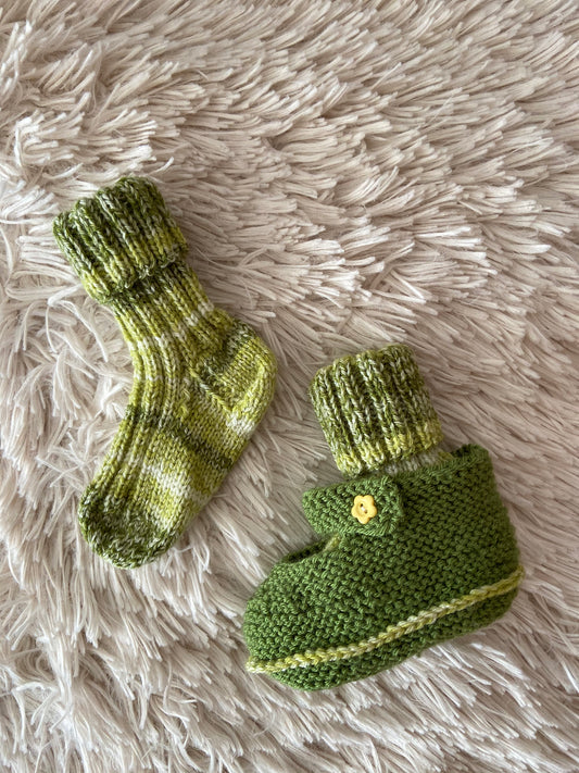 Babyschuhe & -socken Apfelgrün / Weiß meliert